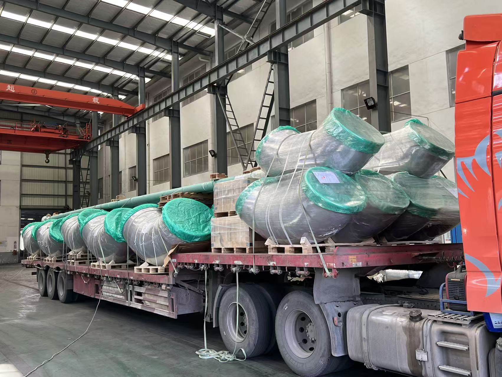 Idag har vårt team framgångsrikt slutfört lastningen och leveransen av en full lastbilslast av rostfria rörkopplingar med stor diameter. Alla komponenter – inklusive armbågar med lång radie och specialtillverkade spolar – skyddades noggrant med förstärkt omslag och ändstycken för att säkerställa säker transport.